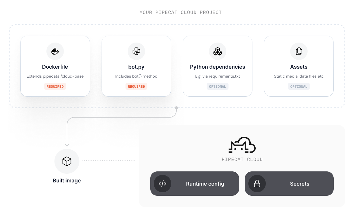 While in beta, Pipecat Cloud requires all images to be built to target Linux on ARM. This is the most common platform for cloud deployments.- All dependencies required for your agent to run.